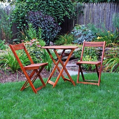MPG-TL37-SET Features: -Bistro set.-Perfect for enjoying a cozy dinner for two outdoors.-Made from Acacia hardwood. Includes: -Includes 1 table and 2 chairs. Assembly Instructions: -No assembly required!. Dimensions: -Chair dimensions: 29.9'' H x 20.2'' W x15.7'' D.-Table dimensions: 29.13'' H x 25.5'' W x 25.5''D. Warranty: -1 Year warranty under normal use, to be free from defects in materials
